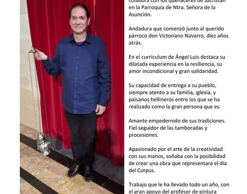 El autor del Cartel para los actos del Corpus en Hellín de 2025 es el hellinero Ángel Luis Sánchez Sánchez.