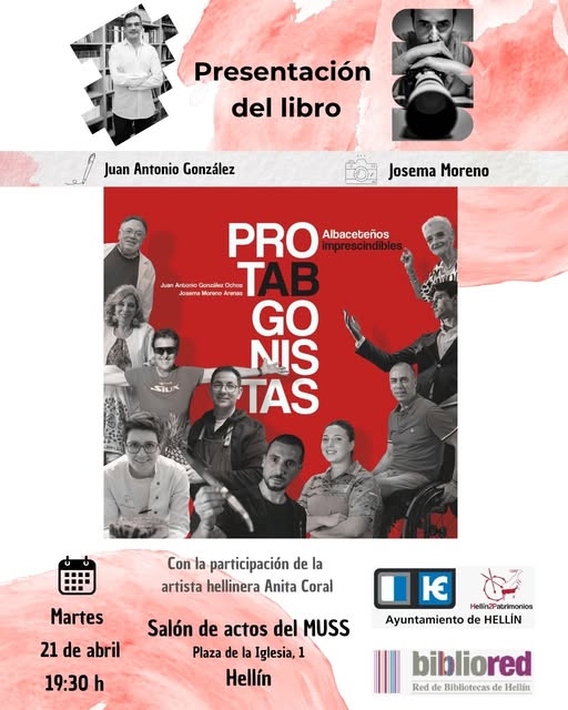 Hellín será escenario el próximo martes 21 de abril de la presentación del libro “ProtABgonistas. Albaceteños imprescindibles”, una obra del periodista Juan Antonio González Ochoa y del fotógrafo de prensa Josema Moreno Arenas que cuenta las historias de figuras destacadas en diferentes ámbitos en la ciudad de Albacete.