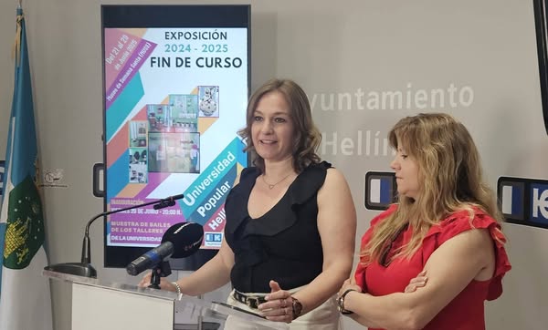 Mari Carmen Perona, coordinadora de la Universidad Popular, y Dolo Valencia, edil de Educación, han presentado la Exposición Fin de curso 2024/25 de la Universidad Popular.