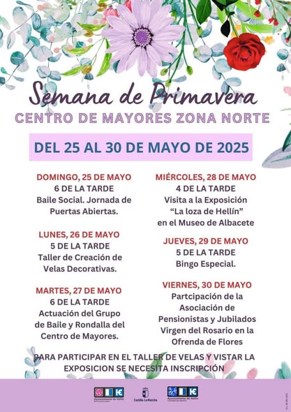 El Ayuntamiento de Hellín, a través de la concejalía de Servicios Sociales y Mayores, organiza una nueva edición de la Semana de Primavera en el Centro de Mayores Zona Norte, que tendrá lugar del 25 al 30 de mayo. La iniciativa busca fomentar la participación, el ocio saludable y el bienestar integral de las personas mayores del municipio.