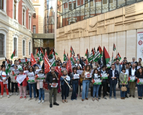 El presidente de la Diputación de Albacete, Santi Cabañero, ha encabezado la representación de la institución en la concentración por Palestina, que desde CCOO y UGT se ha impulsado a las puertas del Palacio Provincial, exigiendo “el fin definitivo del genocidio y una paz justa y duradera”.