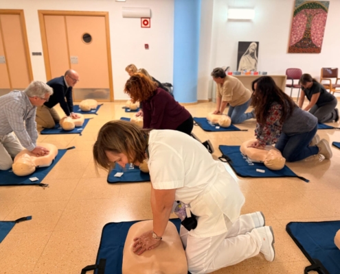 El curso en San Vicente de Paúl, en el que participan en torno a 20 trabajadores y trabajadoras, incluye contenidos teóricos y prácticos sobre reanimación cardiopulmonar básica, actuación ante la obstrucción de la vía aérea por cuerpo extraño y uso del DEA.